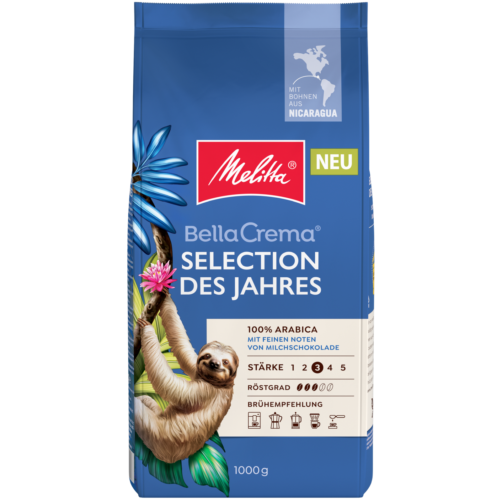 A 2025-as év kávéválogatása a Melittától. Az idei évben a nicaraguai kitűnő termőhelyekről származó első osztályú arabica kávéfajtákból komponálták meg ezt a zamatos szemes kávét. A nicaraguai termőterület hőmérsékleti és klímatikus adottságai teszi különlegessé ezt a kávét. A Melitta gondos speciális pörkölési folyamata által nyeri el ez a keverék a különleges ízét. Finom tejcsokoládés ízjegyekkel rendelkezik ez a szemes kávé. A 2025 év új válogatása A Melitta Bellacrema Selection des Jahres 2025 szemes kávé.